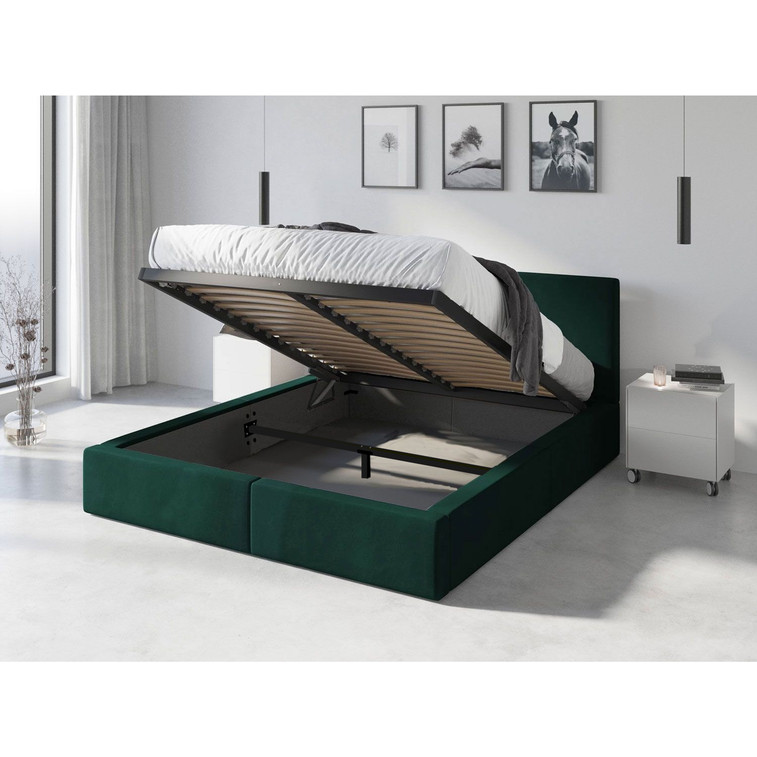 Po zdvihnutí roštu je priestor rozdelený prepážkou. Zadná časť prepážky nemá panel, zatiaľ čo predná časť obsahuje priehradku na posteľnú bielizeň.
