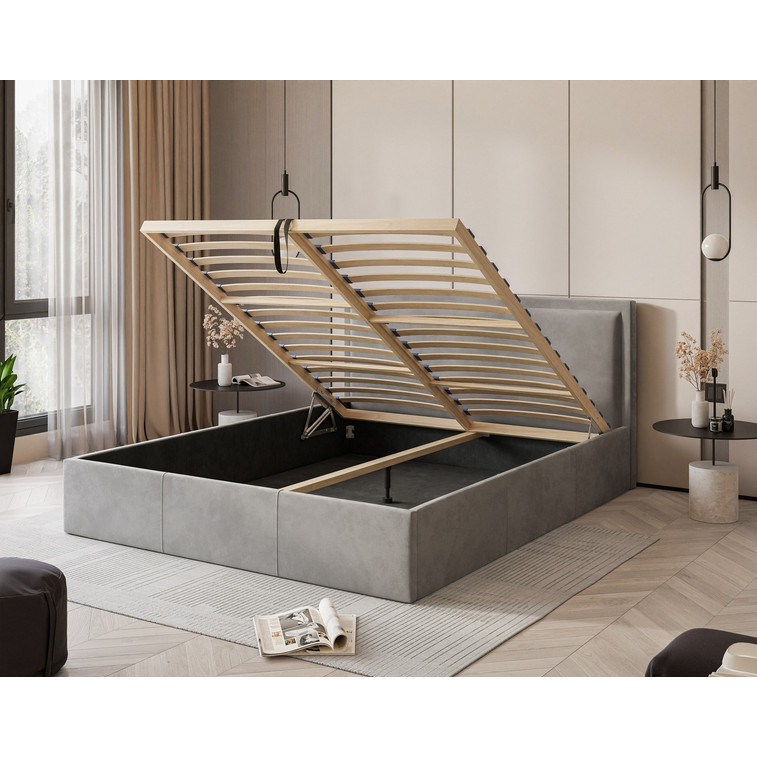 Elegancia, jednoduchosť a štýl sú hlavnými výhodami týchto nadčasových čalúnených postelí, zaisťujúce pohodlné spanie. Vysoká opierka hlavy poskytuje výbornú podporu pre chrbát v sede, čo ocenia predovšetkým klienti pri čítaní kníh alebo sledovaní televízie. Táto posteľ dodáva jedinečnú atmosféru interiéru.
