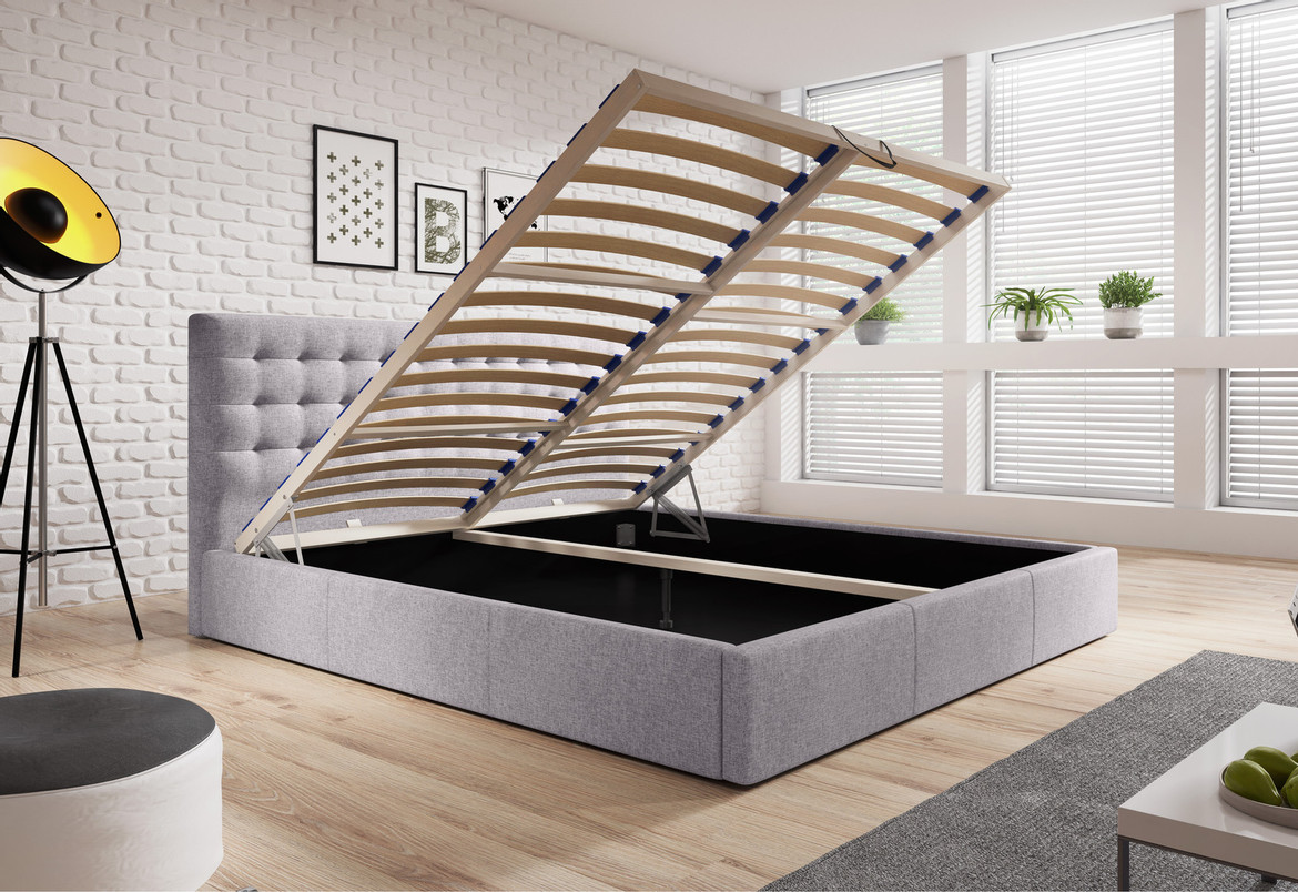 Posteľ je potiahnutá kvalitnou tkaninou Sawana.