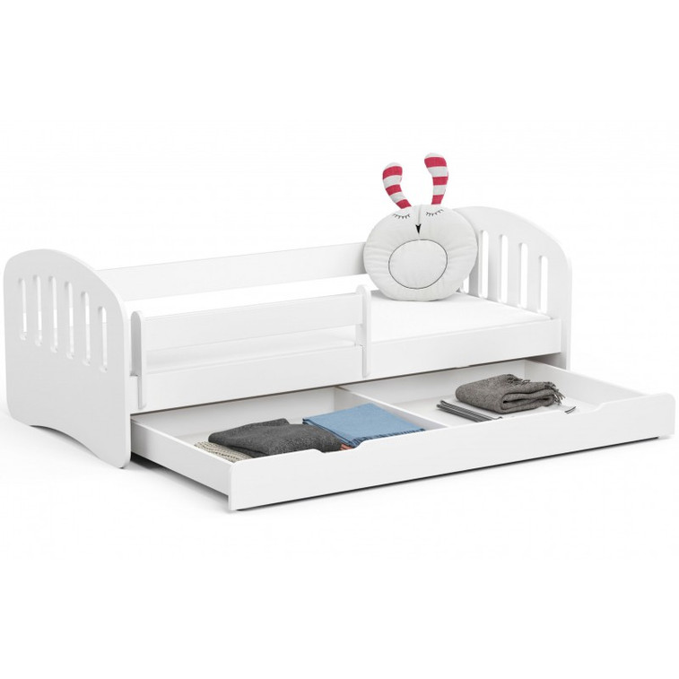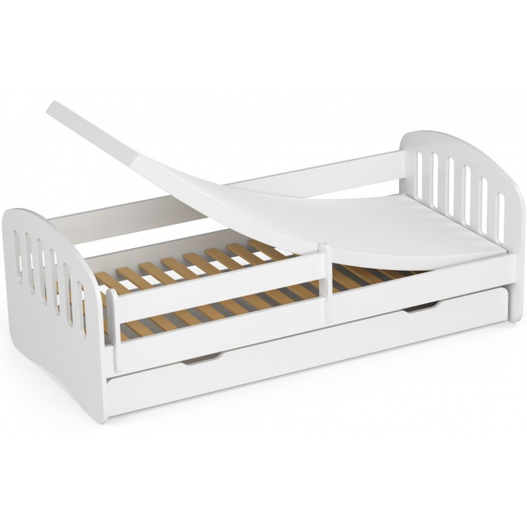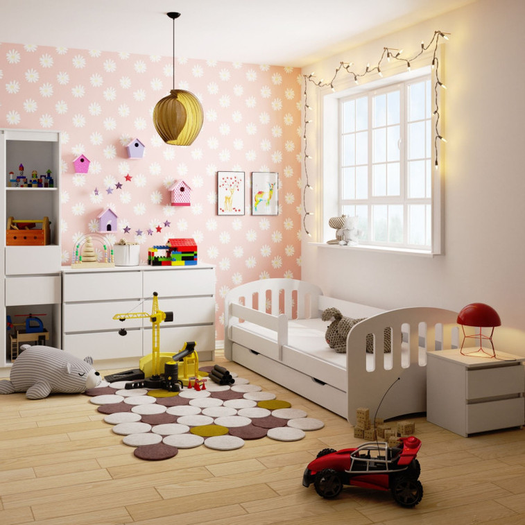 Najpredávanejšia detská posteľ PLAY je ideálnym riešením do menších detských izbičiek kde nie je veľa miesta na uskladanie hračiek, oblečenia a podobne. A to hlavne, pretože vám šetrí miesto vďaka veľkej zásuvke pod celou posteľou, ktorý poslúži na uschovanie hračiek, oblečenia alebo vankúšov a diek. Vďaka použitým materiálom je posteľ pevná a stabilná, samotná inštalácia je jednoduchá a zvládne ju ktokoľvek bez väčších skúseností. Rám postele je vyrobený z pevnej a odolnej nábytkovej dosky, ktorá je jednoduchá na údržbu. Čelá postele sú prispôsobené na prisunutie postele až k stene. Posteľ má kvalitný drevený pevný rošt. Vďaka zábranám po oboch stranách je posteľ bezpečná aj pre deti čo sa príliš vrtí počas spánku. Jednoduchý dizajn zaručí, že posteľ zapadne naozaj do každej detskej izbičky. Veľkou výhodou detských postelí je, že k nej dostanete na viac matrac a nemusíte míňať ďalšie peniaze za matrac.