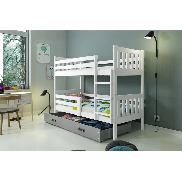 Detská poschodová posteľ CARINO 190x80 cm Sivá Biela