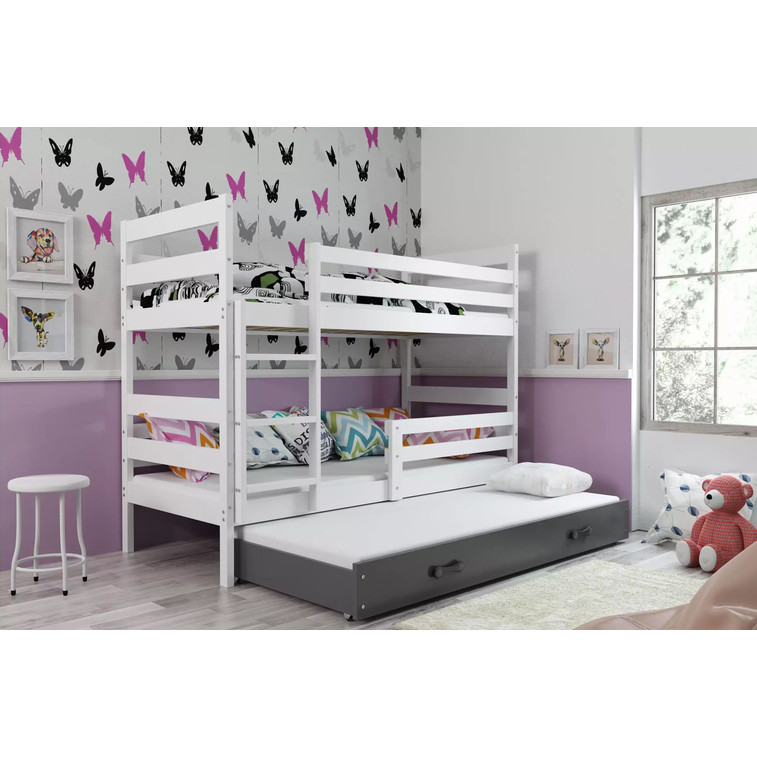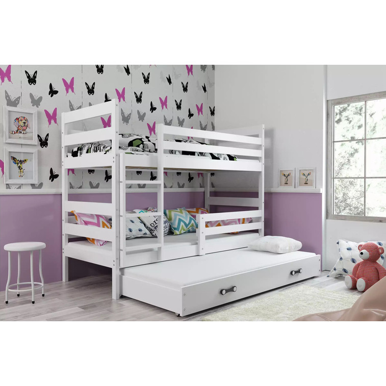Detská poschodová posteľ ERYK s výsuvným lôžkom 80x160 cm - biela.