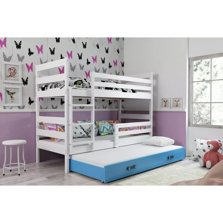 Detská poschodová posteľ ERYK s výsuvným lôžkom 80x160 cm - biela.