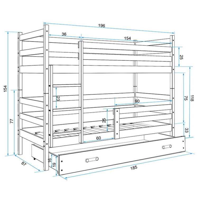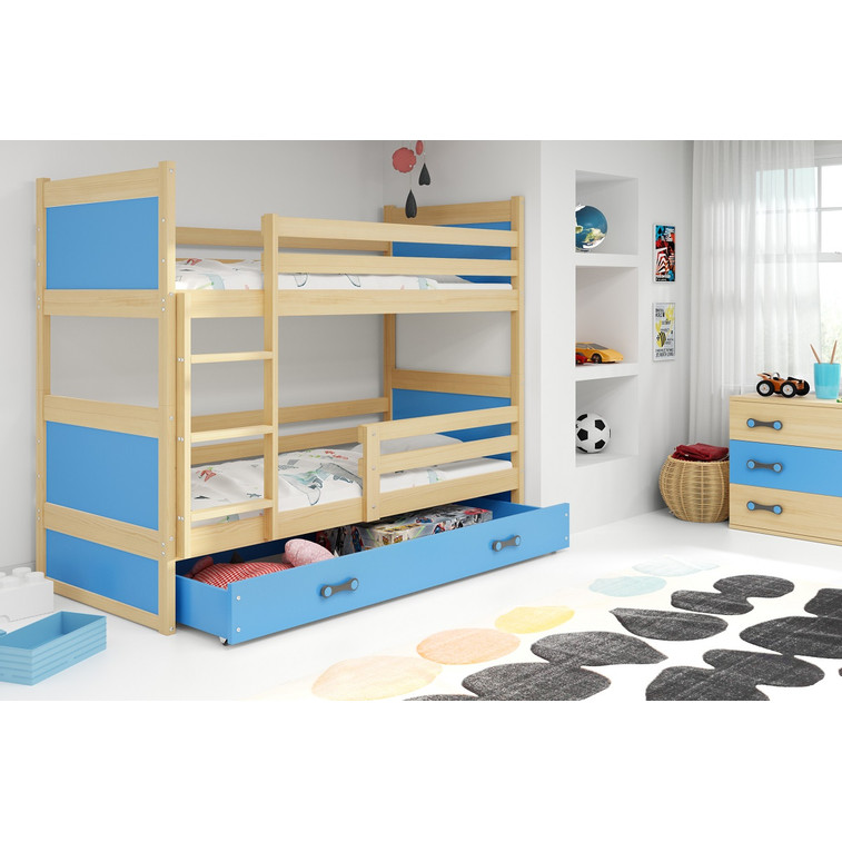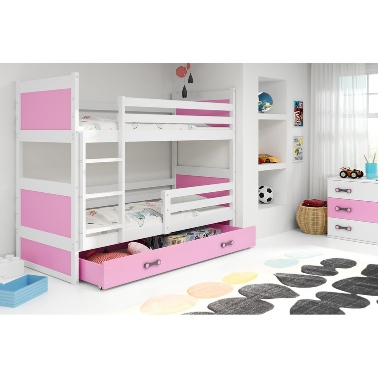 Lacná poschodová posteľ so zábranou vrátane 2x matrac a 2x rošt splní sen vašich deti mať doma skutočnú poschodovku. Týmto výrobkom nielen rozviniete ich fantáziu, ale vďaka ochrannej zábrane ich zabezpečíte po celú noc a konečne si všetci poriadne odpočiniete. Vďaka praktickému úložnému priestoru vyriešite problémy s uschovaním všetkých malých potrebných nevyhnutností. Doprajte teda vášmu dieťaťu mať v izbičke zaujímavú posteľ, na ktorej si bude cez deň hrať a večer usínať bez toho, aby táto investícia výrazne prevetrala váš bankový účet.