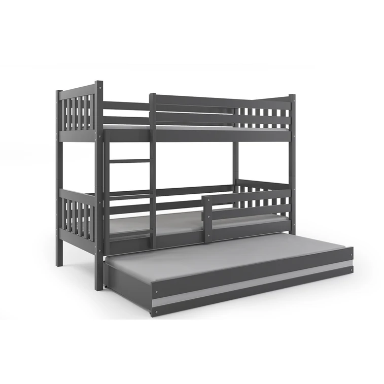 Ide o kompletnú zostavu: POSTEL + 2x MATRACE + 2x ROŠT. Lacná poschodová posteľ s úložným priestorom vrátane 2x matraca a 2x roštu a so zábranou splní sen vašich detí mať doma naozajstný poschodovku. Týmto výrobkom nielen rozviniete ich fantáziu, ale vďaka ochrannej zábrane ich zabezpečíte po celú noc a konečne si všetci poriadne oddýchnete. Vďaka praktickému úložnému priestoru vyriešite problémy s uschovaním všetkých malých potrebných nevyhnutnosťou. Doprajte teda vášmu dieťaťu mať v izbičke zaujímavú posteľ, na ktorej si bude cez deň hrať a večer zaspávať, pričom by táto investícia výrazne prevetrala váš bankový účet.