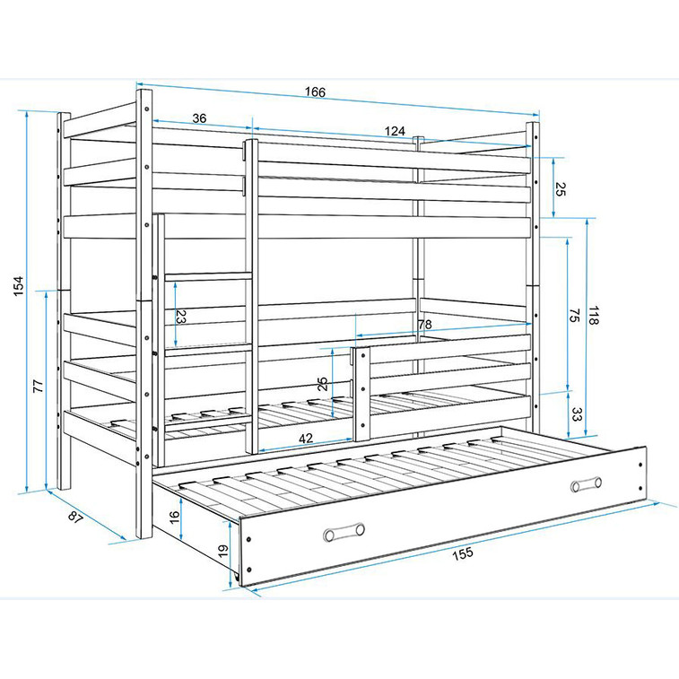 Lacná poschodová posteľ s prístelkou znamená rýchle riešenie nedostatku miesta pre početné rodiny. Tiež sa stretávate s tým že, kam uložiť všetky deti, keď v byte máte iba jednu izbičku? Táto varianta postele je pre vás tou správnou voľbou. Je vhodná pre chlapcov i pre dievčatá a navyše si s ňou užijú kopu zábavy. Poschodová posteľ odjakživa bola snom každého dieťaťa a vy máte teraz možnosť ho vašim ratolestiam splniť. Táto posteľ dokáže rozžiariť nielen interiér izby, ale aj detskú tvár. Navyše všetko teraz ponúkame za akčnú cenu, teda ani veľký výdaj pre vaše konto.