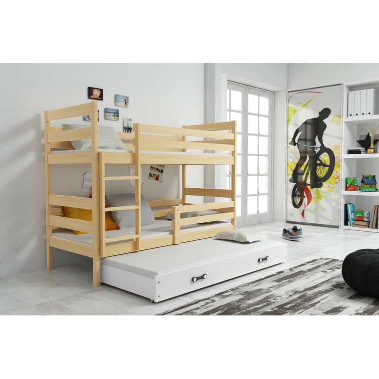 Detská poschodová posteľ s výsuvnou posteľou ERYK 200x90 cm Zelená Borovica