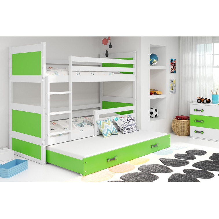 Detská poschodová posteľ s výsuvnou posteľou RICO 190x80 cm Zelená Biela