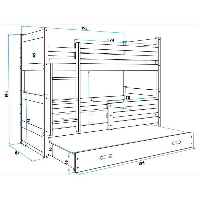 Lacná poschodová posteľ s prístelkou znamená rýchle riešenie nedostatku miesta pre početné rodiny. Tiež sa stretávate s tým že, kam uložiť všetky deti, keď v byte máte iba jednu izbičku? Táto varianta postele je pre vás tou správnou voľbou. Je vhodná pre chlapcov i pre dievčatá a navyše si s ňou užijú kopu zábavy. Poschodová posteľ odjakživa bola snom každého dieťaťa a vy máte teraz možnosť ho vašim ratolestiam splniť. Táto posteľ dokáže rozžiariť nielen interiér izby, ale aj detskú tvár. Navyše všetko teraz ponúkame za akčnú cenu, teda ani pre vás a vaši peňaženku nebude kúpa znamenať čierny deň.