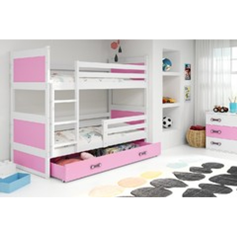 Detská poschodová posteľ s výsuvnou posteľou RICO 200x90 cm Ružová Biela