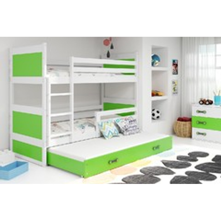 Detská poschodová posteľ s výsuvnou posteľou RICO 200x90 cm Zelená Biela