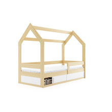 Detská posteľ DOMČEK s úložným priestorom, vrátane matraca a roštu. Tento štýl postele je obľúbený medzi deťmi, pretože prináša kreativitu a nápaditosť do ich izby. S ohľadom na deti je všetok sortiment vyrobený ekologicky. Je teda vylúčené pri kontakte dieťaťa s nábytkom požití toxických alebo zdraviu škodlivých látok.