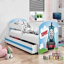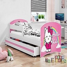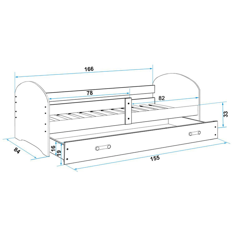Súčasťou tejto postele je pevný a odolný rošt a tiež kvalitný penový matrac. Pri zariaďovaní detskej izby je potrebné dbať predovšetkým na výber postele. Široká zábrana poskytuje nábytku potrebnú bezpečnosť a minimalizuje riziko pádu.Na uskladnenie lôžkovín, hračiek alebo sezónneho oblečenia využite objemný úložný priestor v podobe výsuvného šuplíka.