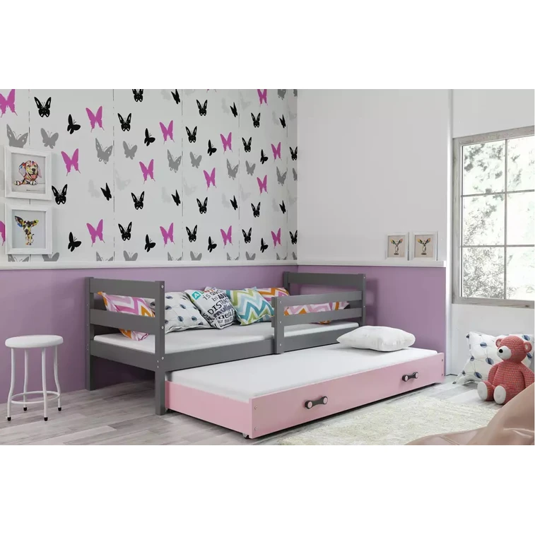 Detská posteľ s výsuvnou posteľou ERYK 190x80 cm Sivá Ružová