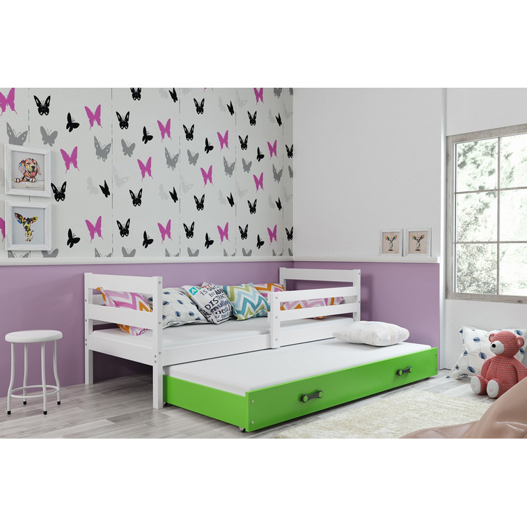 Detská posteľ s výsuvnou posteľou ERYK 200x90 cm Zelená Biela