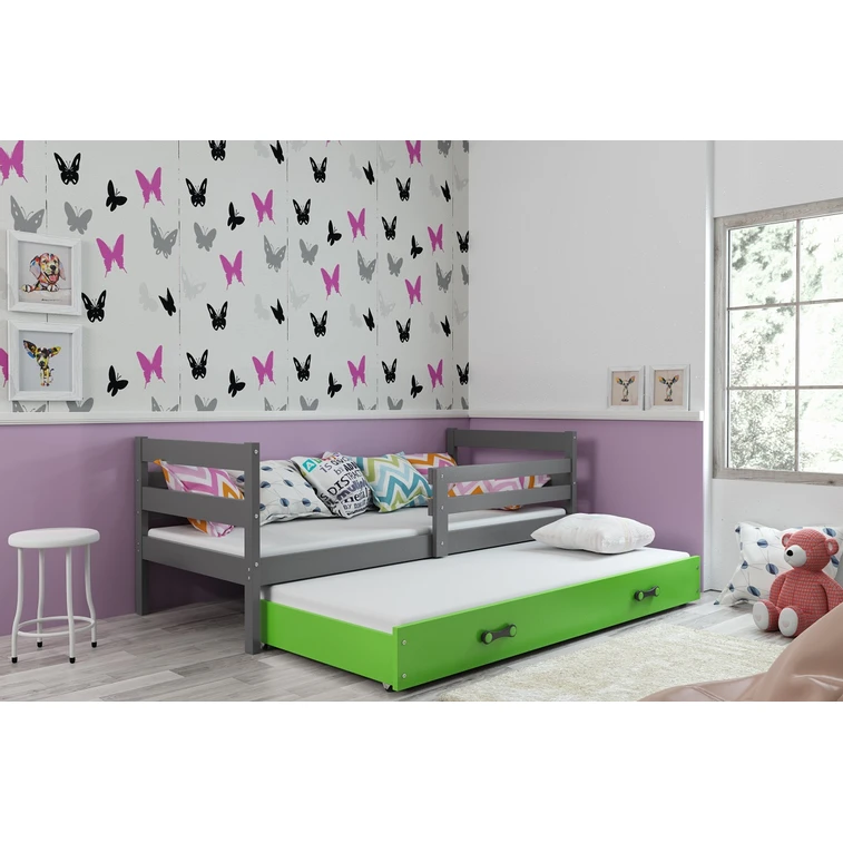 Detská posteľ s výsuvnou posteľou ERYK 200x90 cm Zelená Sivá