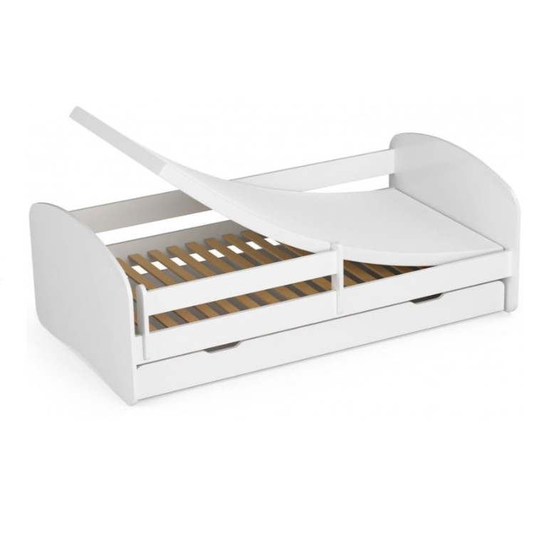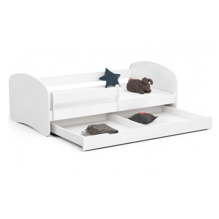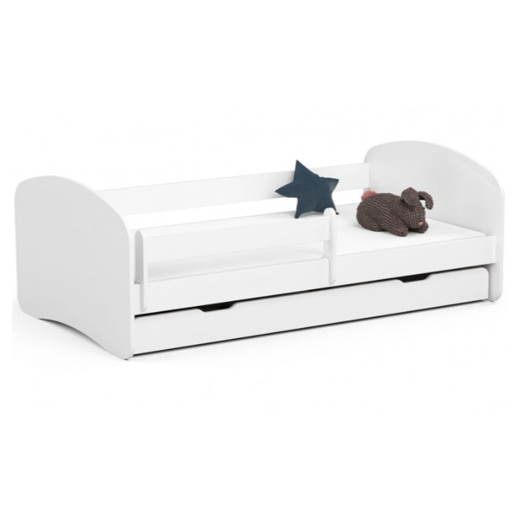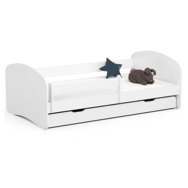 Detská posteľ zo série SMILE skvele kombinuje pohodlné miesto na spanie a úložný priestor, ktorého nie je nikdy dosť. Je vyrobená z laminovanej dosky s ABS hranami. Farebné prevedenie skvele zapadne do chlapčenských i dievčenských izbičiek. Súčasťou postele SMILE je drevený rošt, matrac a zásuvka pod posteľ. Odnímateľná bočnica o dĺžke 100 cm bráni pádu dieťaťa z postele. Pre maximálnu bezpečnosť sú všetky hrany postele zaoblené.