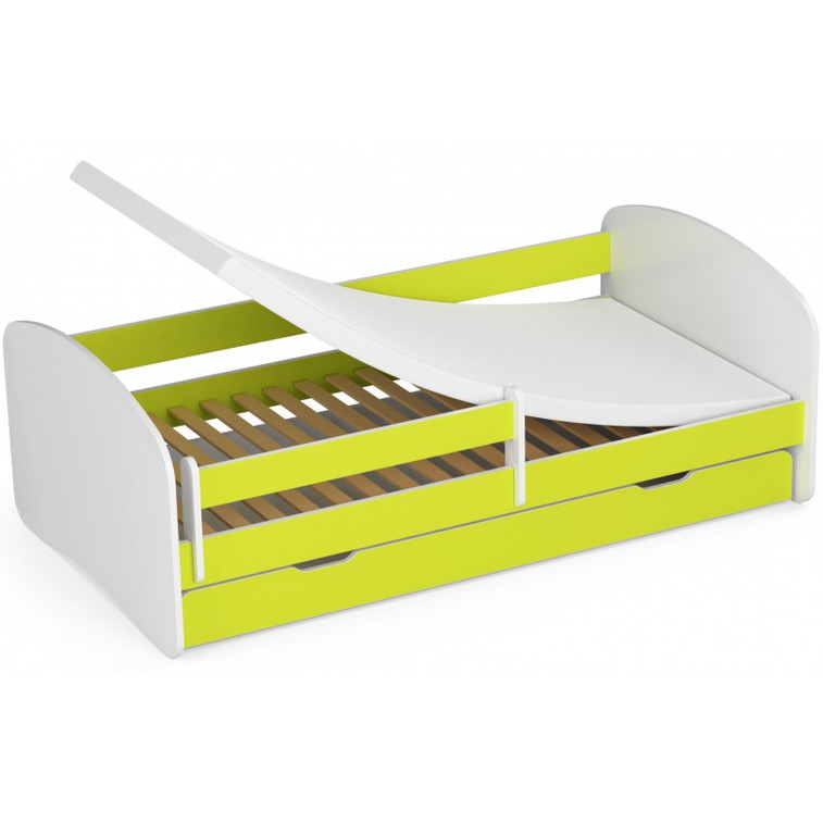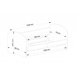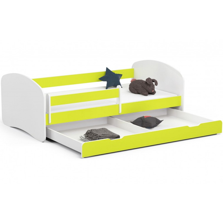 Detská posteľ zo série SMILE skvele kombinuje pohodlné miesto na spanie a úložný priestor, ktorého nie je nikdy dosť. Je vyrobená z laminovanej dosky s ABS hranami. Farebné prevedenie skvele zapadne do chlapčenských i dievčenských izbičiek. Súčasťou postele SMILE je drevený rošt, matrac a zásuvka pod posteľ. Odnímateľná bočnica o dĺžke 100 cm bráni pádu dieťaťa z postele. Pre maximálnu bezpečnosť sú všetky hrany postele zaoblené.