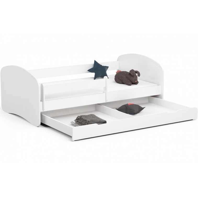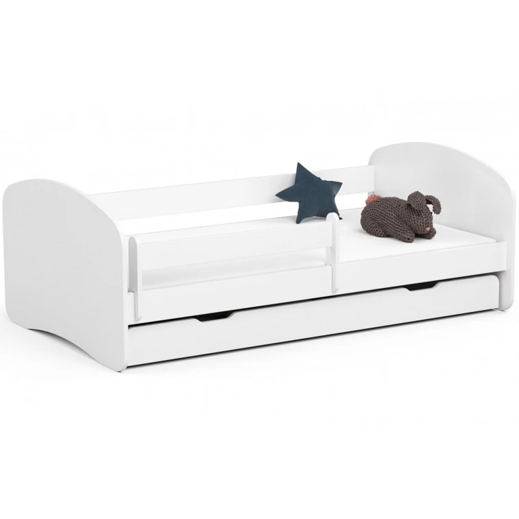Detská posteľ zo série SMILE skvelo kombinuje pohodlné miesto na spanie a úložný priestor, ktorého nie je nikdy dosť. Je vyrobená z laminovanej dosky s ABS hranami. Farebné prevedenie skvele zapadne do chlapčenských i dievčenských izbičiek. Súčasťou postele SMILE je drevený rošt, matrac a úložná zásuvka. Odnímateľná bočnica bráni pádu dieťaťa z postele. Pre maximálnu bezpečnosť sú všetky hrany postele zaoblené.