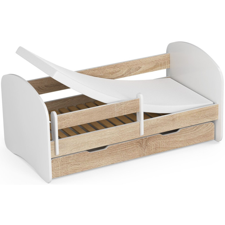 Detská posteľ zo série SMILE skvelo kombinuje pohodlné miesto na spanie a úložný priestor, ktorého nie je nikdy dosť. Je vyrobená z laminovanej dosky s ABS hranami. Farebné prevedenie skvele zapadne do chlapčenských i dievčenských izbičiek. Súčasťou postele SMILE je drevený rošt, matrac a úložná zásuvka. Odnímateľná bočnica bráni pádu dieťaťa z postele. Pre maximálnu bezpečnosť sú všetky hrany postele zaoblené.