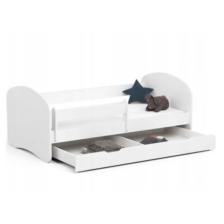 Detská posteľ zo série SMILE skvelo kombinuje pohodlné miesto na spanie a úložný priestor, ktorého nie je nikdy dosť. Je vyrobená z laminovanej dosky s ABS hranami. Farebné prevedenie skvele zapadne do chlapčenských i dievčenských izbičiek. Súčasťou postele SMILE je drevený rošt, matrac a úložna zásuvka. Odnímateľná bočnica bráni pádu dieťaťa z postele. Pre maximálnu bezpečnosť sú všetky hrany postele zaoblené.