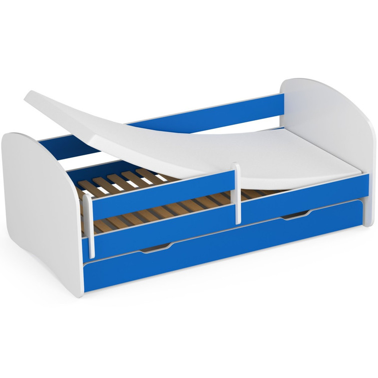 Detská posteľ zo série SMILE skvelo kombinuje pohodlné miesto na spanie a úložný priestor, ktorého nie je nikdy dosť. Je vyrobená z laminovanej dosky s ABS hranami. Farebné prevedenie skvele zapadne do chlapčenských i dievčenských izbičiek. Súčasťou postele SMILE je drevený rošt, matrac a úložna zásuvka. Odnímateľná bočnica bráni pádu dieťaťa z postele. Pre maximálnu bezpečnosť sú všetky hrany postele zaoblené.