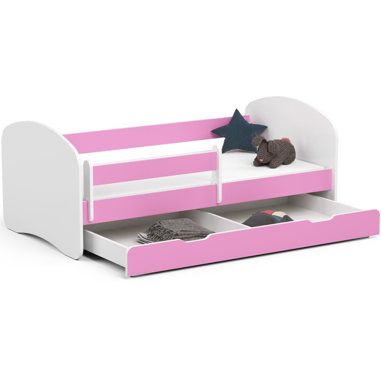 Detská posteľ zo série SMILE skvelo kombinuje pohodlné miesto na spanie a úložný priestor, ktorého nie je nikdy dosť. Je vyrobená z laminovanej dosky s ABS hranami. Farebné prevedenie skvele zapadne do chlapčenských i dievčenských izbičiek. Súčasťou postele SMILE je drevený rošt, matrac a úložna zásuvka. Odnímateľná bočnica bráni pádu dieťaťa z postele. Pre maximálnu bezpečnosť sú všetky hrany postele zaoblené.