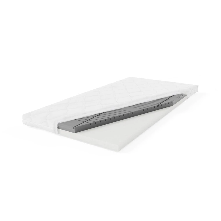 Matrac je vyrobený z polyuretánovej peny T21 s výškou 4 cm a profilovanej peny T30 s výškou 4 cm.Vďaka absencii pružinovej vložky je matrac ľahký a ľahko sa prenáša.Pena sa dokonale prispôsobí telu používateľa a zvyšuje komfort spánku.