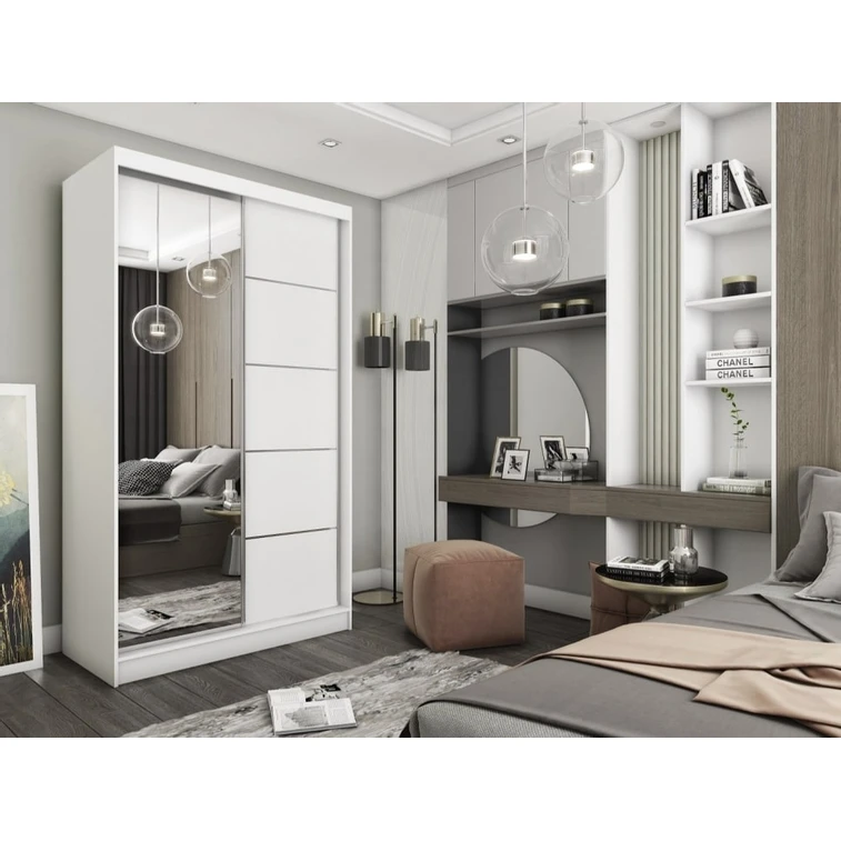 Korpus a dvere sú vyrobené z kvalitného lamina (16 mm). Šatníková skriňa Makira si môžete doplniť existujúce vybavenie izby.
