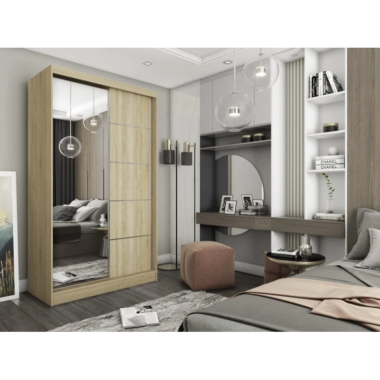 Korpus a dvere sú vyrobené z kvalitného lamina (16 mm). Šatníková skriňa Makira si môžete doplniť existujúce vybavenie izby.