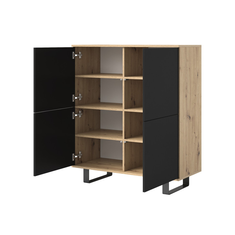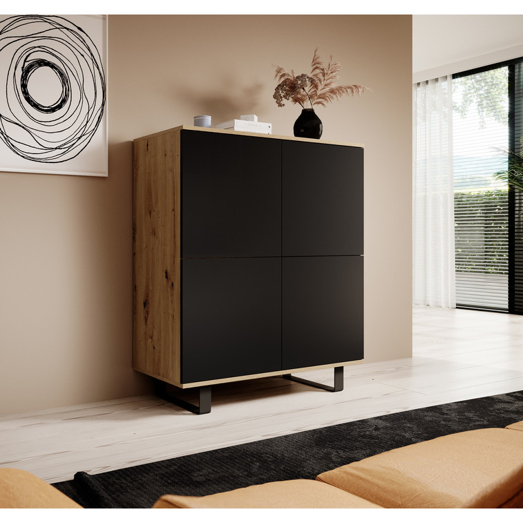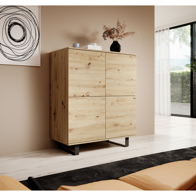 Komoda 4D Logan. Je vyrobená z laminovanej dosky so štruktúrou dreva, ktorá vyzerá úžasne v každej miestnosti. Otváranie v systéme "PUSH TO OPEN" - komoda je vybavená mechanizmom, ktorý po ľahkom stlačení dvierka otvorí, vysoká kvalita. Komodu je možné postaviť aj bez kovovej podnože.