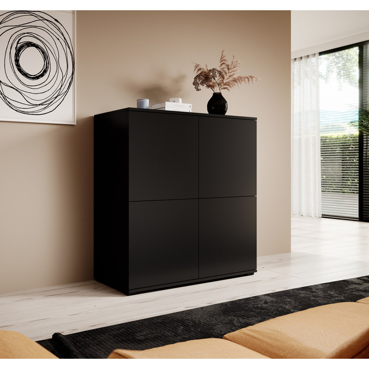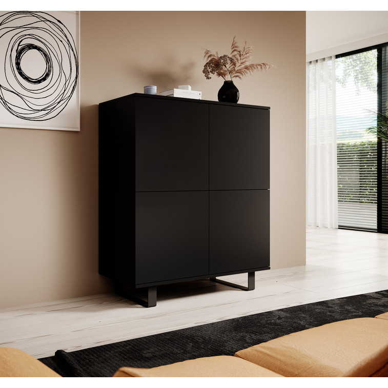 Komoda 4D Logan. Je vyrobená z laminovanej dosky so štruktúrou dreva, ktorá vyzerá úžasne v každej miestnosti. Otváranie v systéme "PUSH TO OPEN" - komoda je vybavená mechanizmom, ktorý po ľahkom stlačení dvierka otvorí, vysoká kvalita. Komodu je možné postaviť aj bez kovovej podnože.