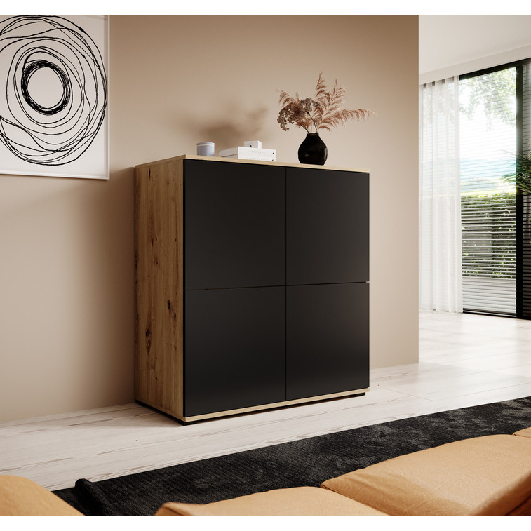 Komoda 4D Logan. Je vyrobená z laminovanej dosky so štruktúrou dreva, ktorá vyzerá úžasne v každej miestnosti. Otváranie v systéme "PUSH TO OPEN" - komoda je vybavená mechanizmom, ktorý po ľahkom stlačení dvierka otvorí, vysoká kvalita. Komodu je možné postaviť aj bez kovovej podnože.