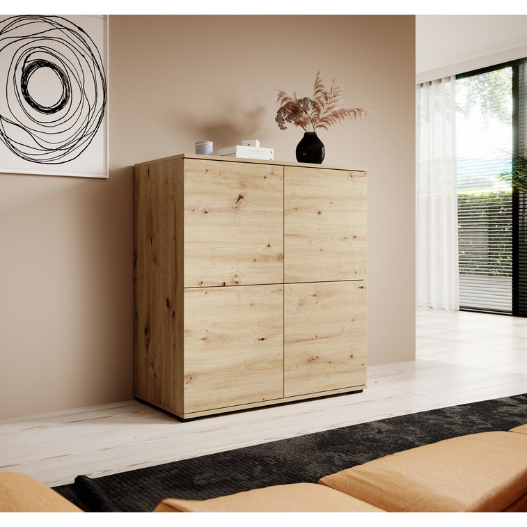 Komoda 4D Logan. Je vyrobená z laminovanej dosky so štruktúrou dreva, ktorá vyzerá úžasne v každej miestnosti. Otváranie v systéme "PUSH TO OPEN" - komoda je vybavená mechanizmom, ktorý po ľahkom stlačení dvierka otvorí, vysoká kvalita. Komodu je možné postaviť aj bez kovovej podnože.