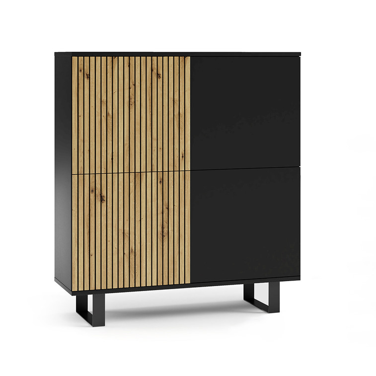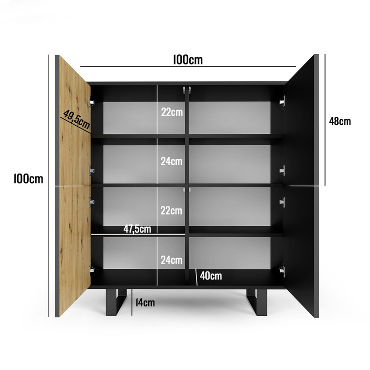 Je vyrobená z pevnej laminovanej dosky, ktorá je odolná proti oderu a poškodeniu. Jej vzhľad splní očakávania každého, kto ocení kombináciu jednoduchosti a elegancie. Bezúchytkové dvierka zaisťujú pohodlné používanie.