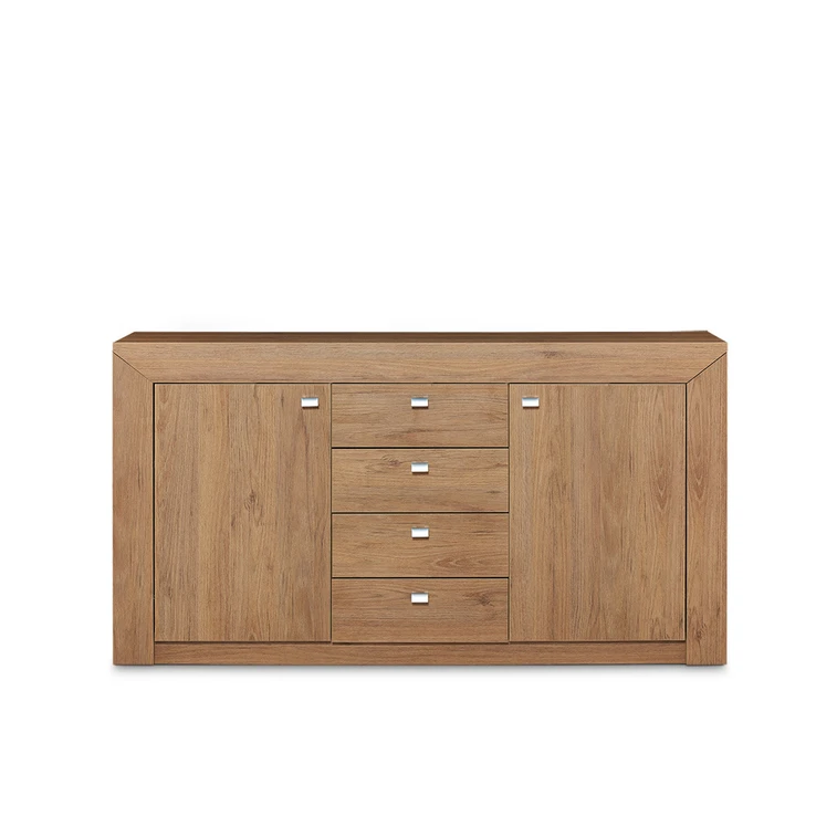 Dizajn komody CALDO zaručuje dostatok úložného priestoru. Bezpečná a odolná vďaka použitiu vysoko kvalitných dosiek a špeciálnemu upevneniu zadnej steny sa modernistická skrinka CALDO stane vynikajúcou investíciou na veľa rokov. Nohy s možnosťou aretácie umožňujú prispôsobiť výšku nábytku potrebám interiéru. Samozatváracie zásuvky s možnosťou tichého zatvárania fungujú hladko a ticho, rovnako ako panty dvierok s dorazom a Clip On prevedením. Vysoko kvalitné lamino podobné drevu chrání povrch tejto modernej komody proti oteru a poškodeniu. Je to skvelé riešenie do spálni, obývačky alebo izbu pre teenagerov. Túto štýlovo skrinku ocenia aj majitelia hotelov.