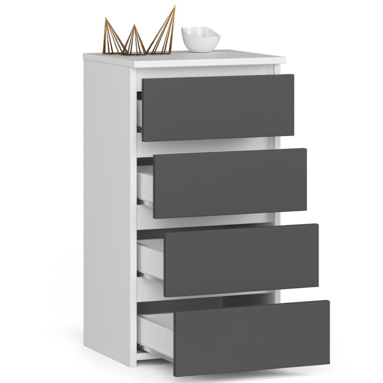Jednoduchá a moderná komoda. Je vyrobená z pevnej laminovanej dosky, ktorá je odolná proti oderu a poškodeniu. Univerzálny vzhľad splní očakávania každého, kto ocenia kombináciu jednoduchosti a elegancie. Bezúchytkové čelá zásuviek a dvierok zaisťujú pohodlné používanie.