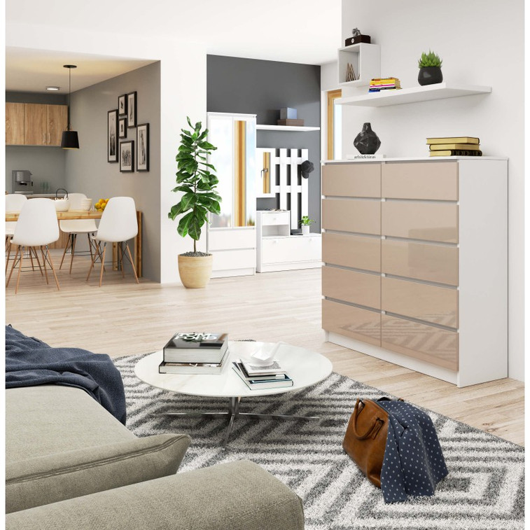 Kvalitná komoda, vo farebnom prevedením cappuccino / biela lesklá.