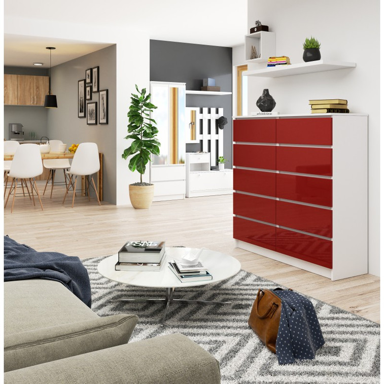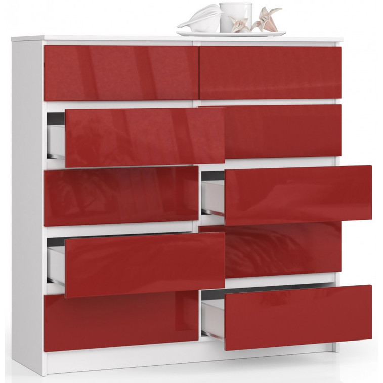 Kvalitná komoda, vo farebnom prevedením červená / biela lesklá.