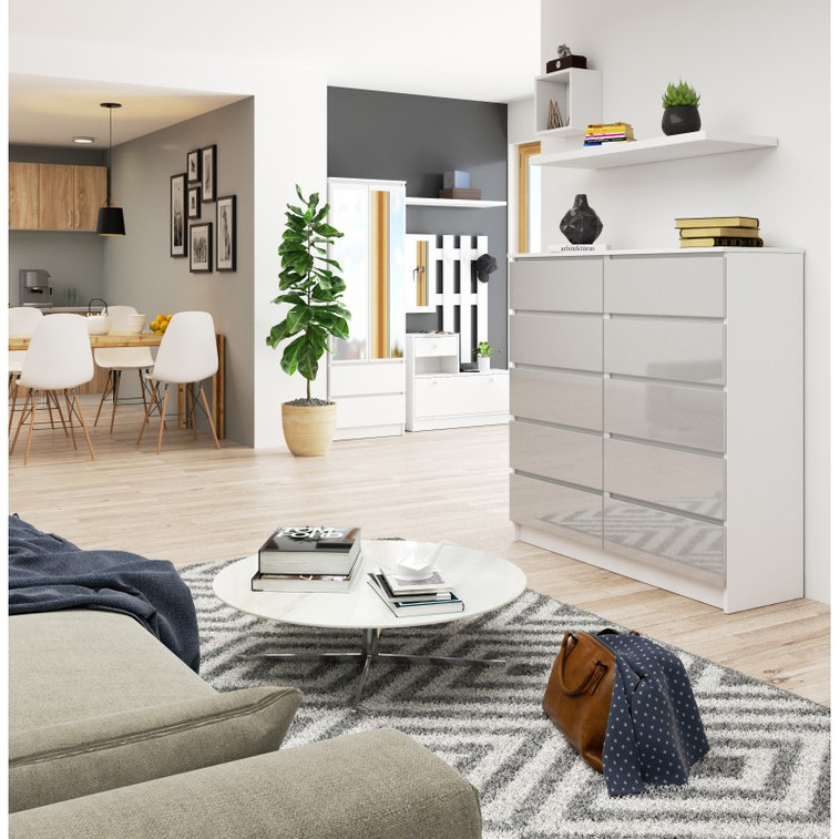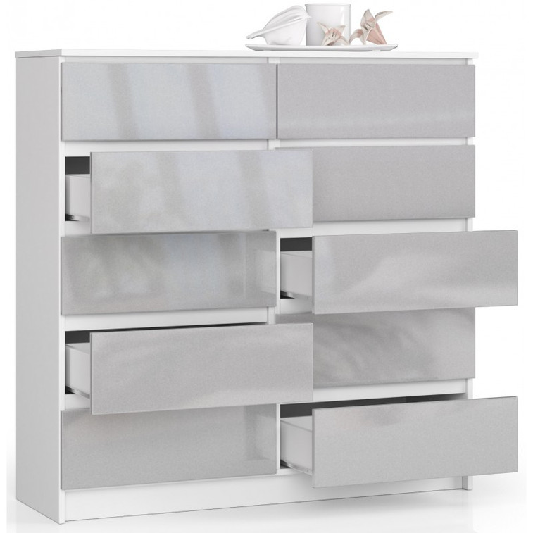 Kvalitná komoda, v farebnom prevedení metalic/biela lesklá.