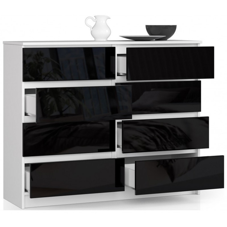 Komoda má moderný vzhľad a vďaka 8 zásuvkám do nej uskladníte veľké množstvo vecí ako je oblečenie, hračky pre deti alebo náradie. Skvele pasuje do domácnosti, ale svoje miesto nájde aj v pracovných podmienkach.