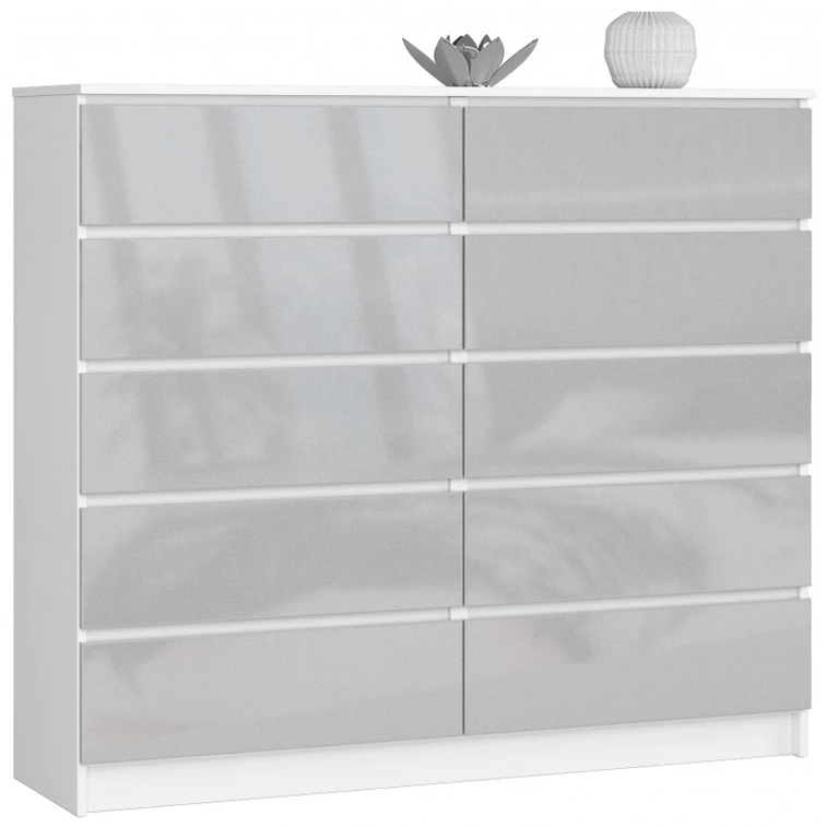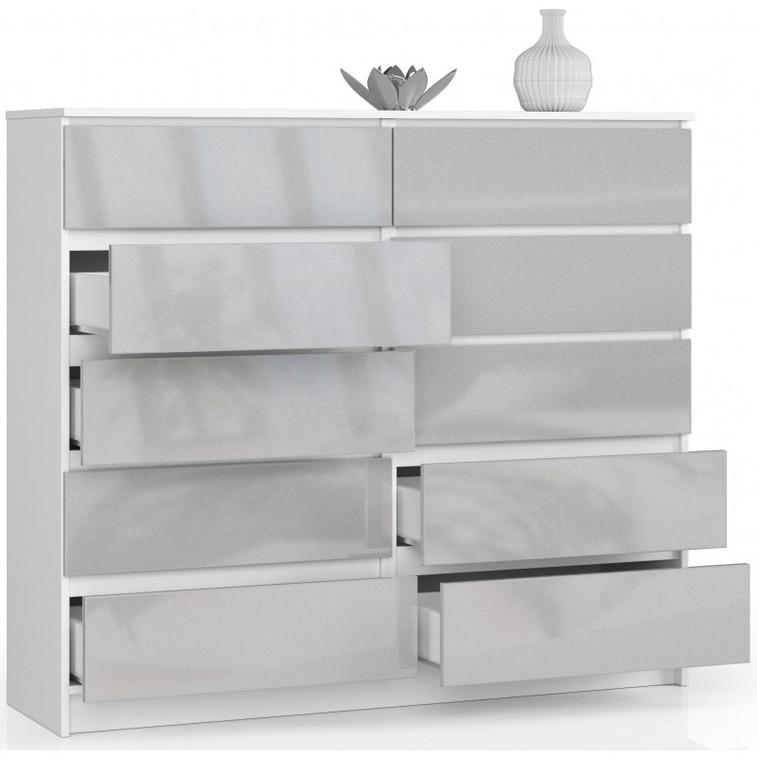 Komoda K140 10SZ biela/metalik lesk