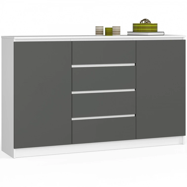 Komoda má moderný vzhľad a vďaka 4 zásuvkám a 2 dvierkam do nej uskladníte veľké množstvo vecí ako je oblečenie, hračky pre deti alebo náradie. Skvele sa hodí do domácnosti, ale svoje miesto nájde aj v pracovných podmienkach.