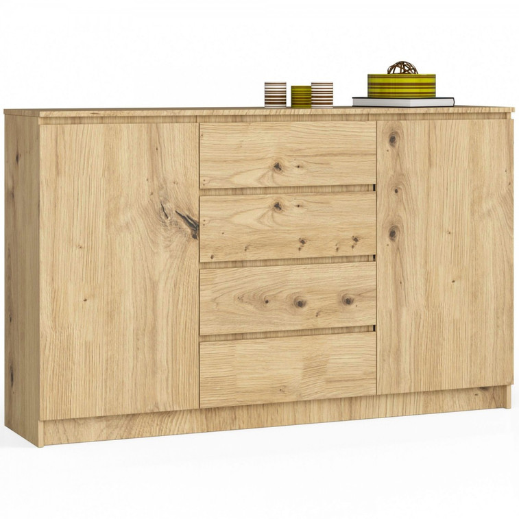 Komoda má moderný vzhľad a vďaka 4 zásuvkám a 2 dvierkam do nej uskladníte veľké množstvo vecí ako je oblečenie, hračky pre deti alebo náradie. Skvelo sa hodí do domácnosti, ale svoje miesto nájde aj v pracovných podmienkach.