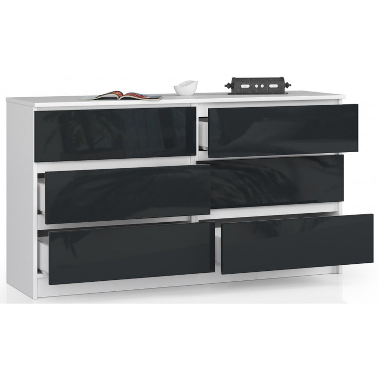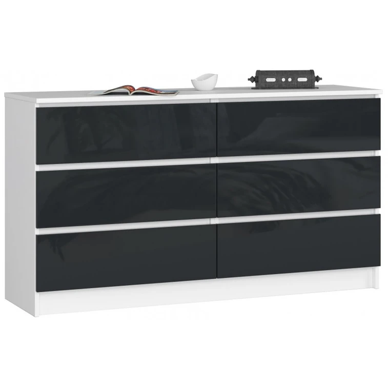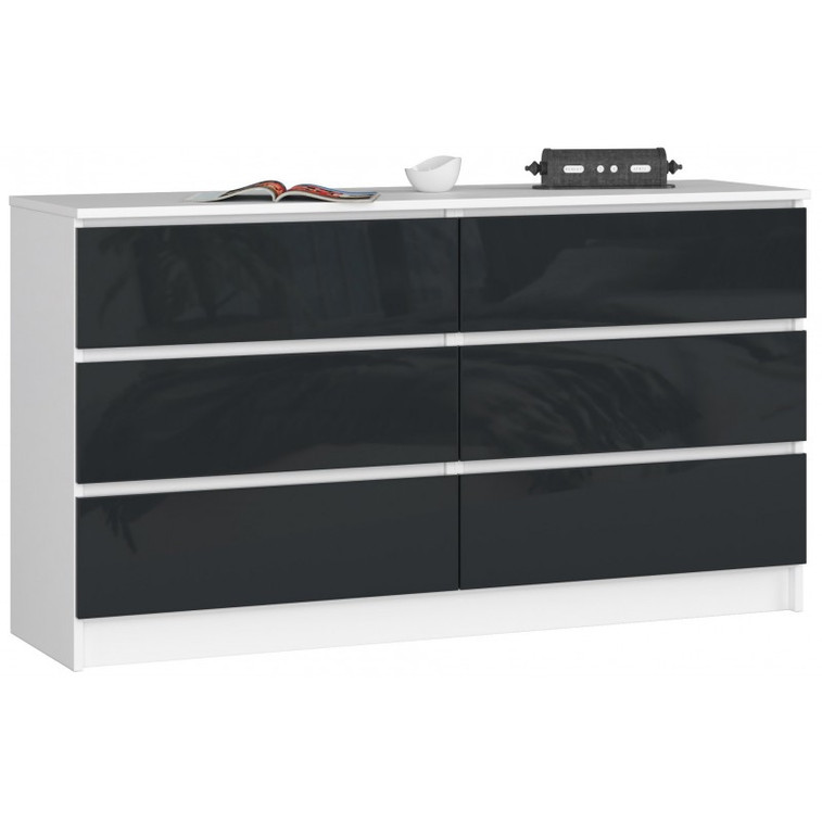 Komoda K140 6SZ biela/grafit lesk