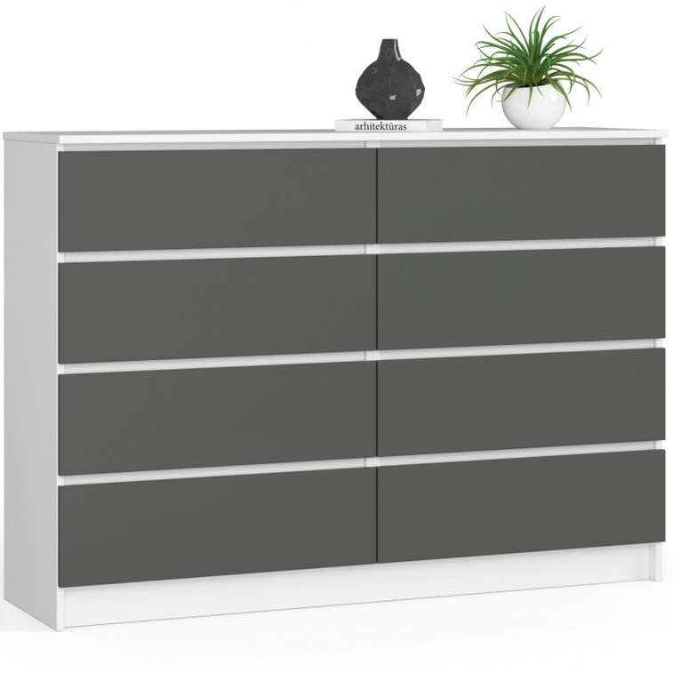 Komoda K140 8SZ biela/grafit lesk