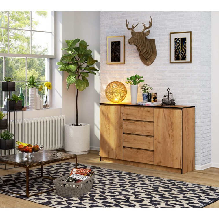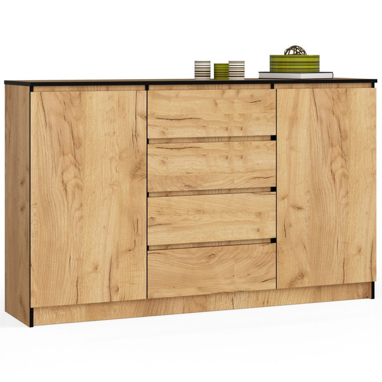 Jednoduchá a moderná komoda. Je vyrobená z pevnej laminovanej dosky, ktorá je odolná proti oderu a poškodeniu. Univerzálny vzhľad splní očakávania každého, kto ocení kombináciu jednoduchosti a elegancie. Bezúchytkové čelá zásuviek zaisťujú pohodlné používanie.