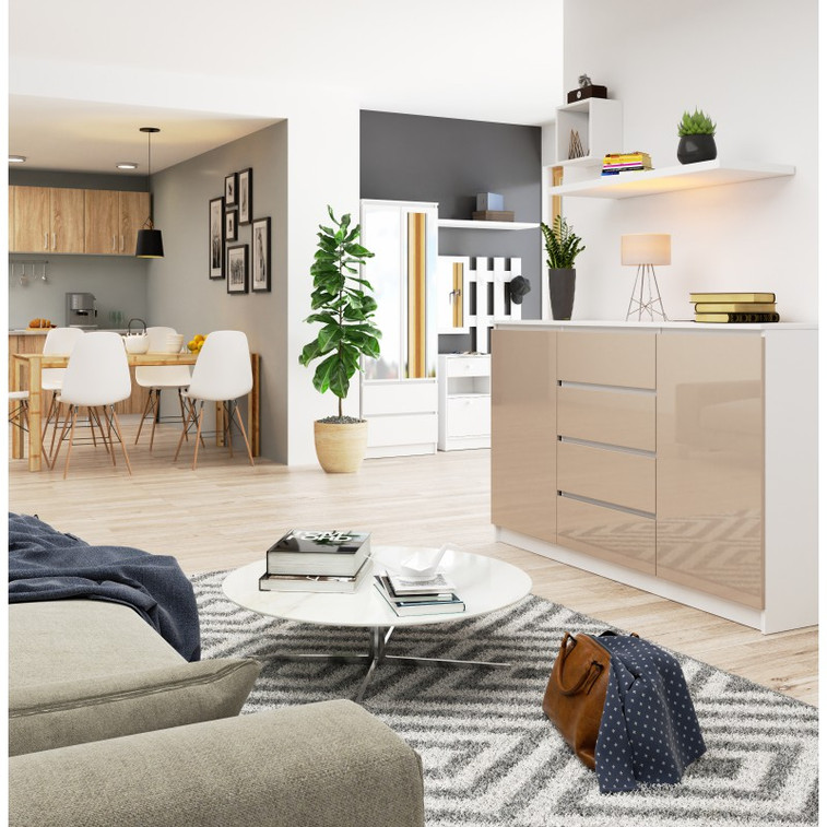 Farebná varianta biela / cappuccino lesk, sa hodí do moderného štýlu domácnosti.