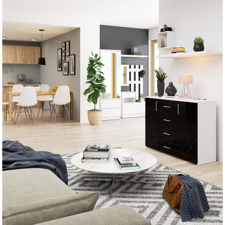 Farebná varianta biela / čierna-lesk, sa hodí do moderného štýlu domácnosti.
