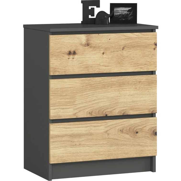 Jednoduchá a moderná komoda. Je vyrobená z pevnej laminovanej dosky, ktorá je odolná proti oderu a poškodeniu. Univerzálny vzhľad splní očakávania každého, kto ocení kombináciu jednoduchosti a elegancie. Bezúchytkové čelá zásuviek zaisťujú pohodlné používanie.